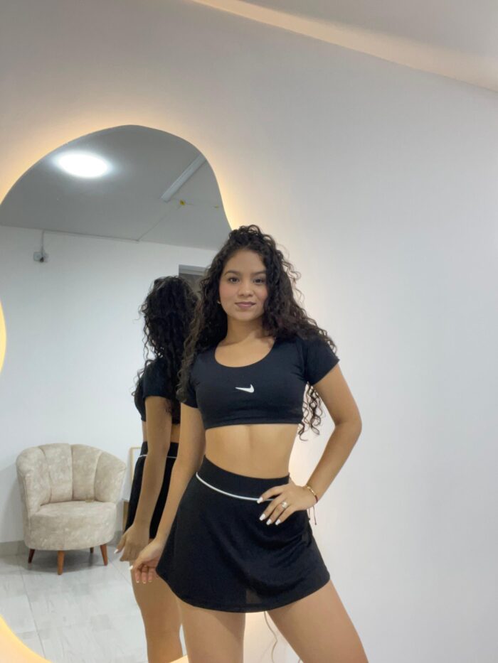 La falda deportiva negra es el básico moderno que necesitas para tus rutinas, clases o salidas casuales. Combina la frescura de una falda con la comodidad de un short interno, ideal para mujeres activas y con estilo.