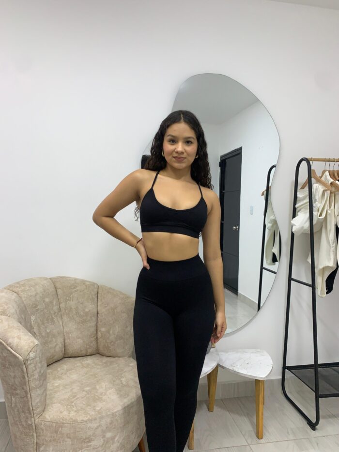 Minimalista, poderoso y funcional. EL SET ALI es ese conjunto deportivo que realza tu figura y te hace sentir segura tanto en el gym como fuera de él. Su diseño estilizado y su tono negro clásico lo convierten en un esencial de tu clóset fitness.