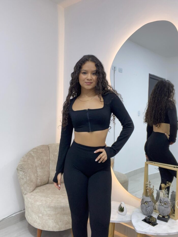 El negro nunca pasa de moda, y este set lleva el estilo sporty con toques minimalistas a otro nivel. Diseñado para resaltar tu figura y brindarte comodidad total, es la opción ideal para entrenar, bailar o incluso salir con un look casual y moderno.